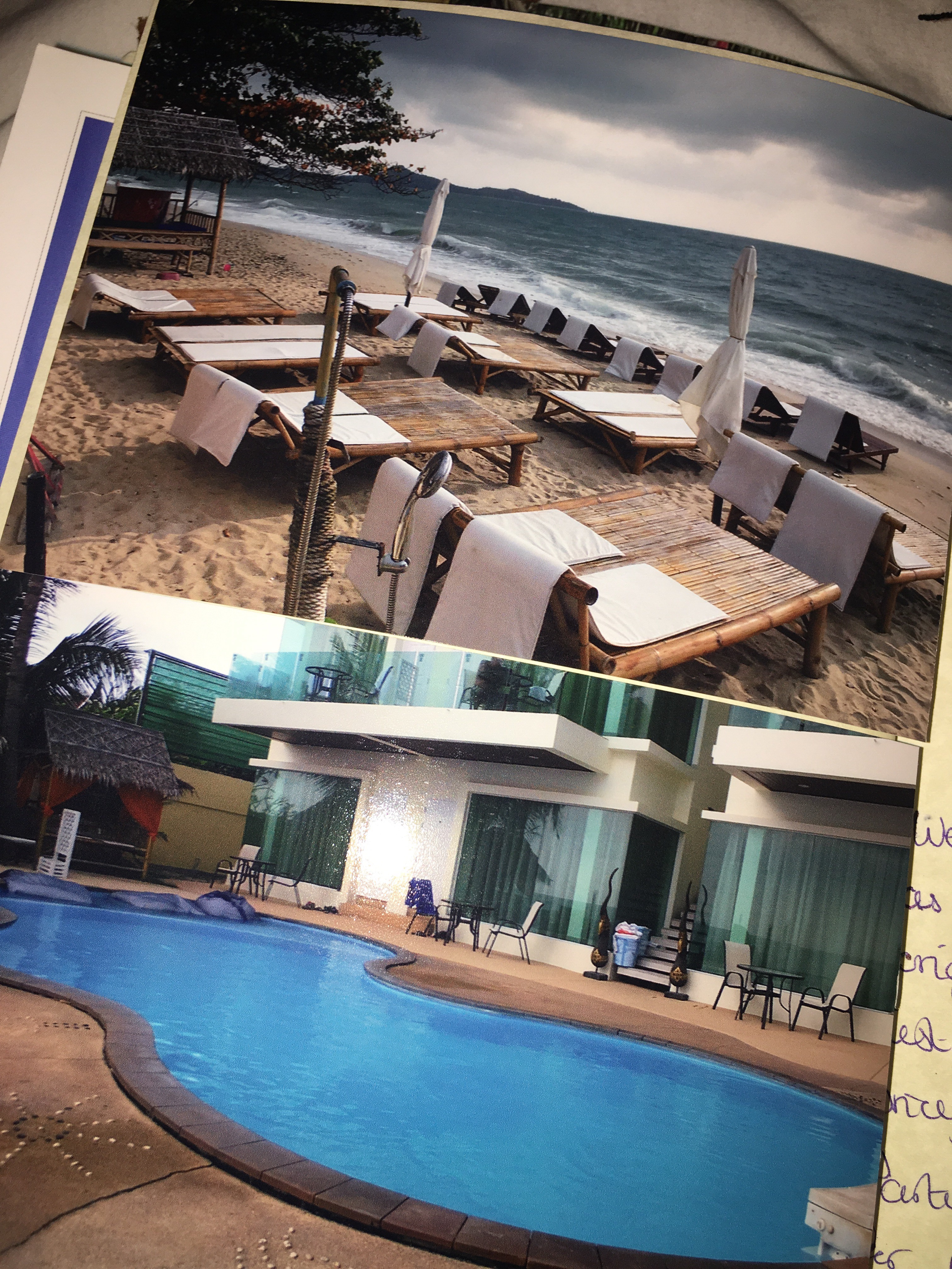 ‘Samui beach resort’. I can’t tell you how nice it was to have a warm shower! Lovely beach front resort, it was like a retreat. Beautiful pool, staff were lovely, it was just what we needed.