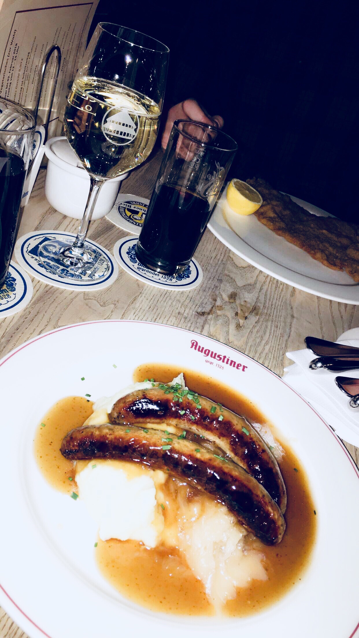 This was the moment….I needed to sample the local food! Sausage, mash potatoes and sourcrout. It’s fair to say sourcrout isn’t for me, but the sausage and mash was to die for, along with the wine.